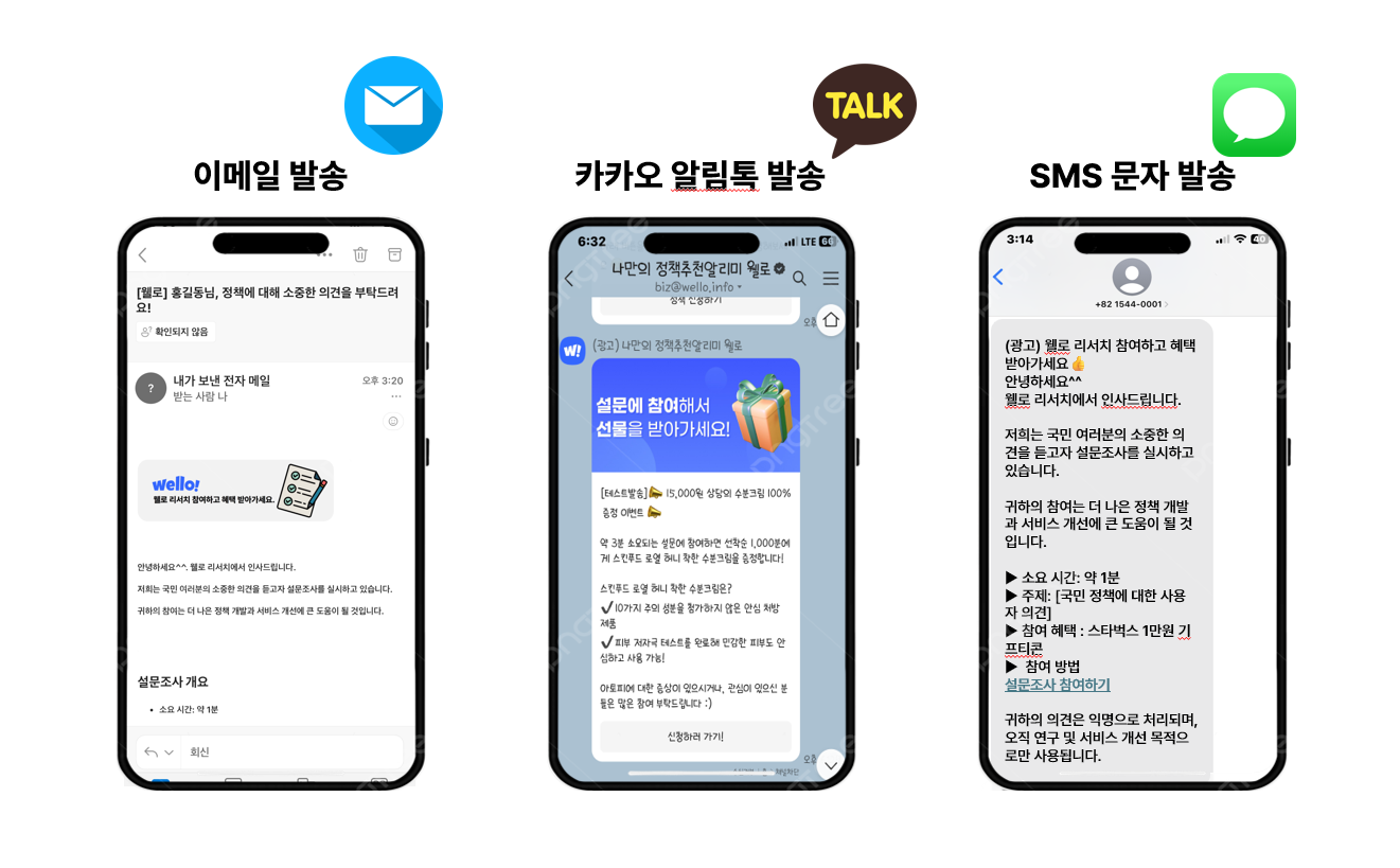 "이메일, 카카오 알림톡, SMS문자"
